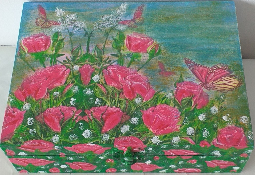 Pe site-ul meu decoratiuniinspirate.com gasiti inca doua minunate cutii din lemn decorate manual in care va puteti pastra amintirile acestei primaveri sau tot ce va doriti.